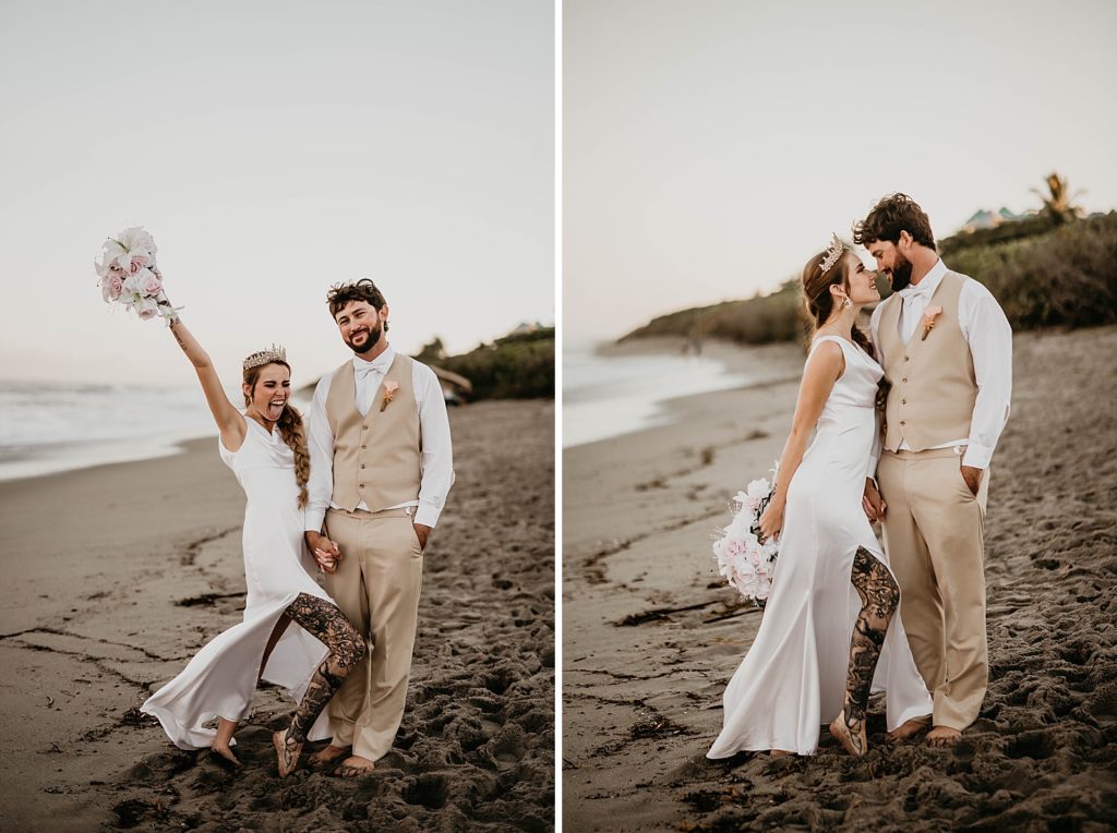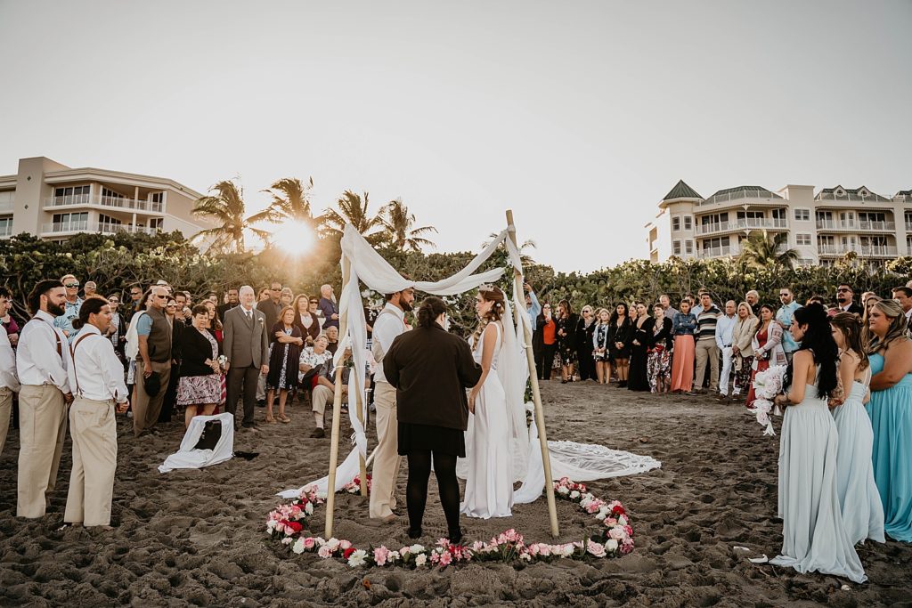 Ceremony Venue: Beach Access #49 | Reception Venue: Jupiter Farms | Hair and Makeup: Lustre Chic Beautique | Florist: Creative Florals Inc | Catering: Curbside Gourmet | Cake: Sweet Stacy’s